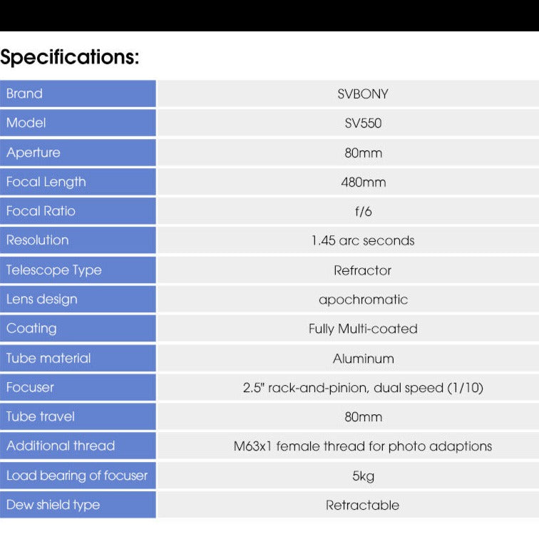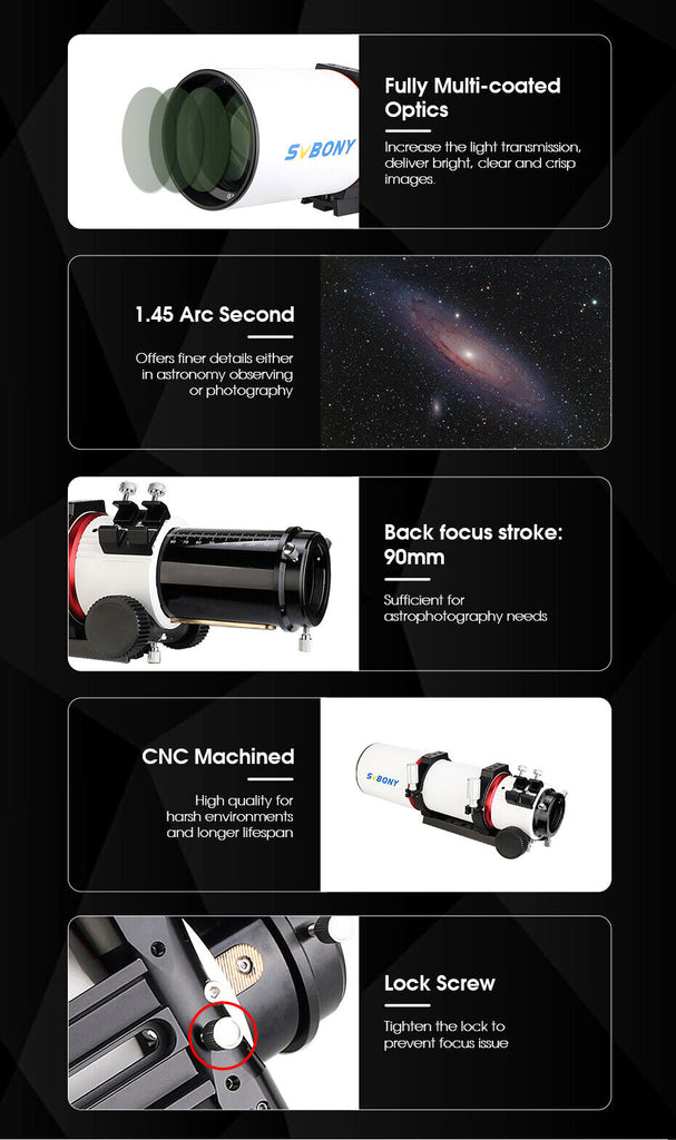 SaleSVBONY SV550 80mm Telescope Refractor Triplet F9381A APO OTA Deep Space Photography