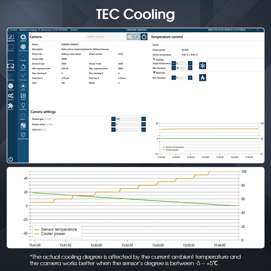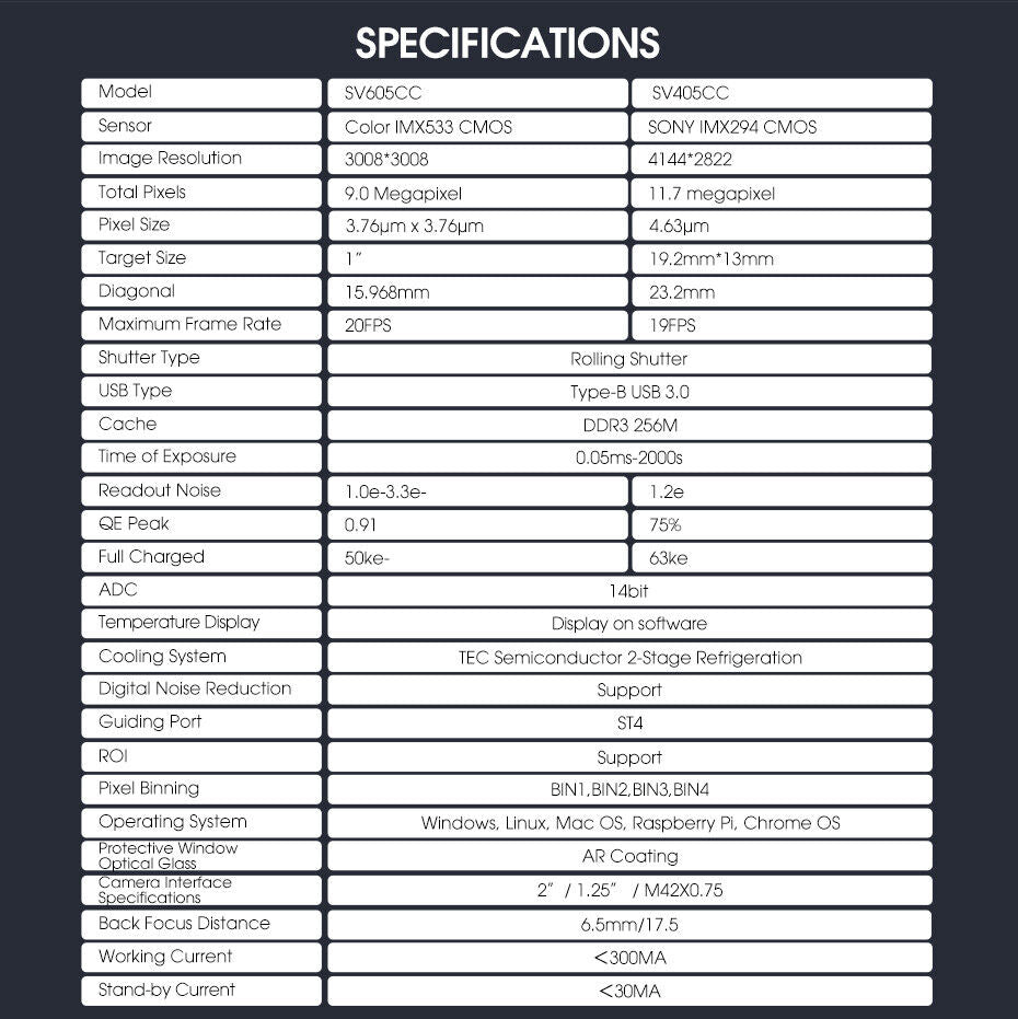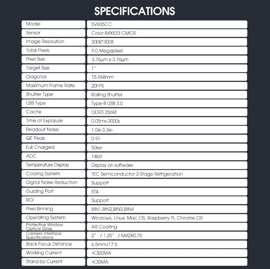 SaleSVBONY SV605CC TEC cooled OSC Camera USF9198K 9MP USB 3.0 for Deep Space Astrophotography