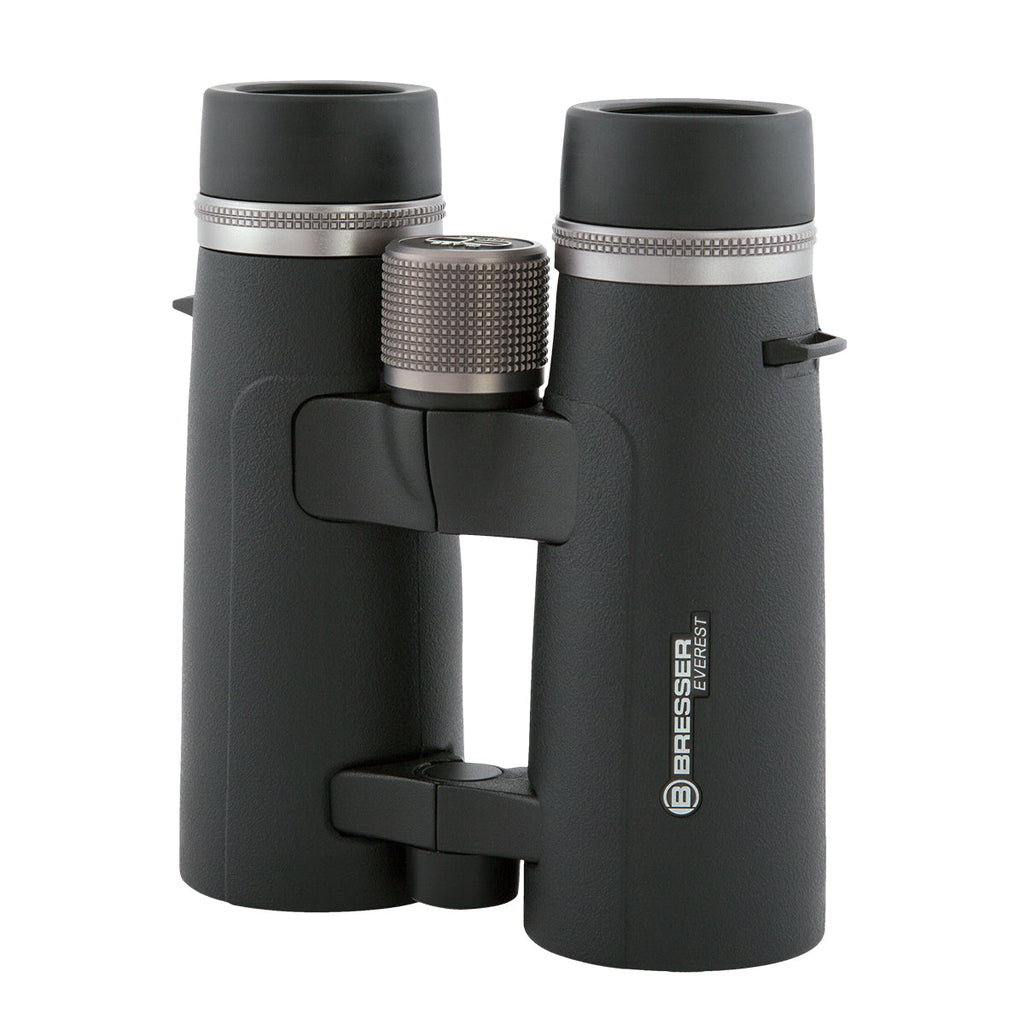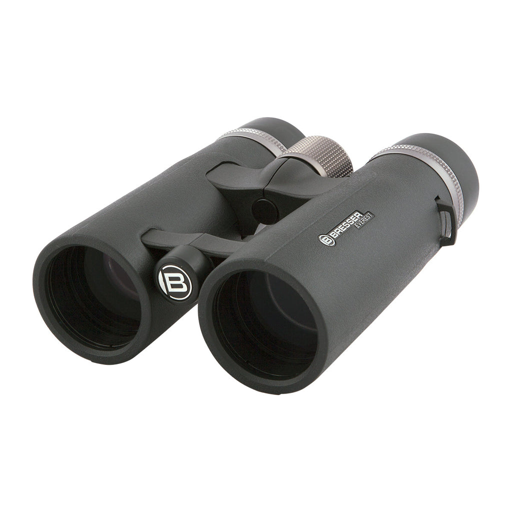 Designed for durability, the Bresser Everest Binoculars are nitrogen-purged to prevent water and dew damage, avoid fogging, and keep out dirt and dust. The objective lenses are protected by flip-down covers for quick observation, or they can be completely removed when needed. The binoculars come in a sturdy molded case, ensuring both protection and portability. A tripod connection thread is included for extra stability when required. The set also comes with a cleaning cloth, neck strap with a padded neck pad for comfort, and clear instructions for adjusting the diopter and focus settings.