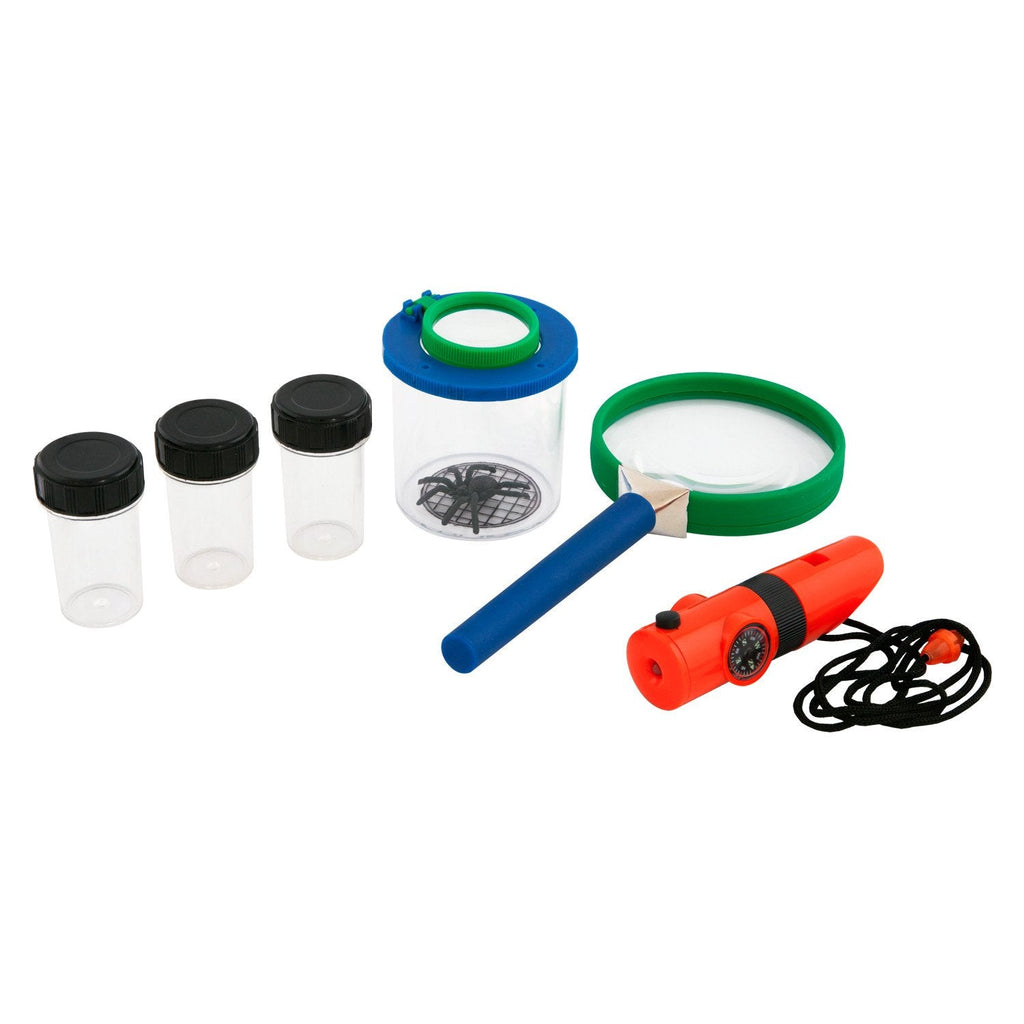 Explore One’s Explorer Set outfits children for a day of outdoor adventure and discovery. In addition to a 2x/4x magnifying glass, the set has a bug box, specimen containers and a whistle with extras like a compass and light.