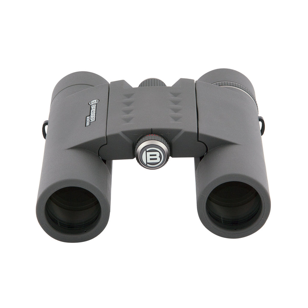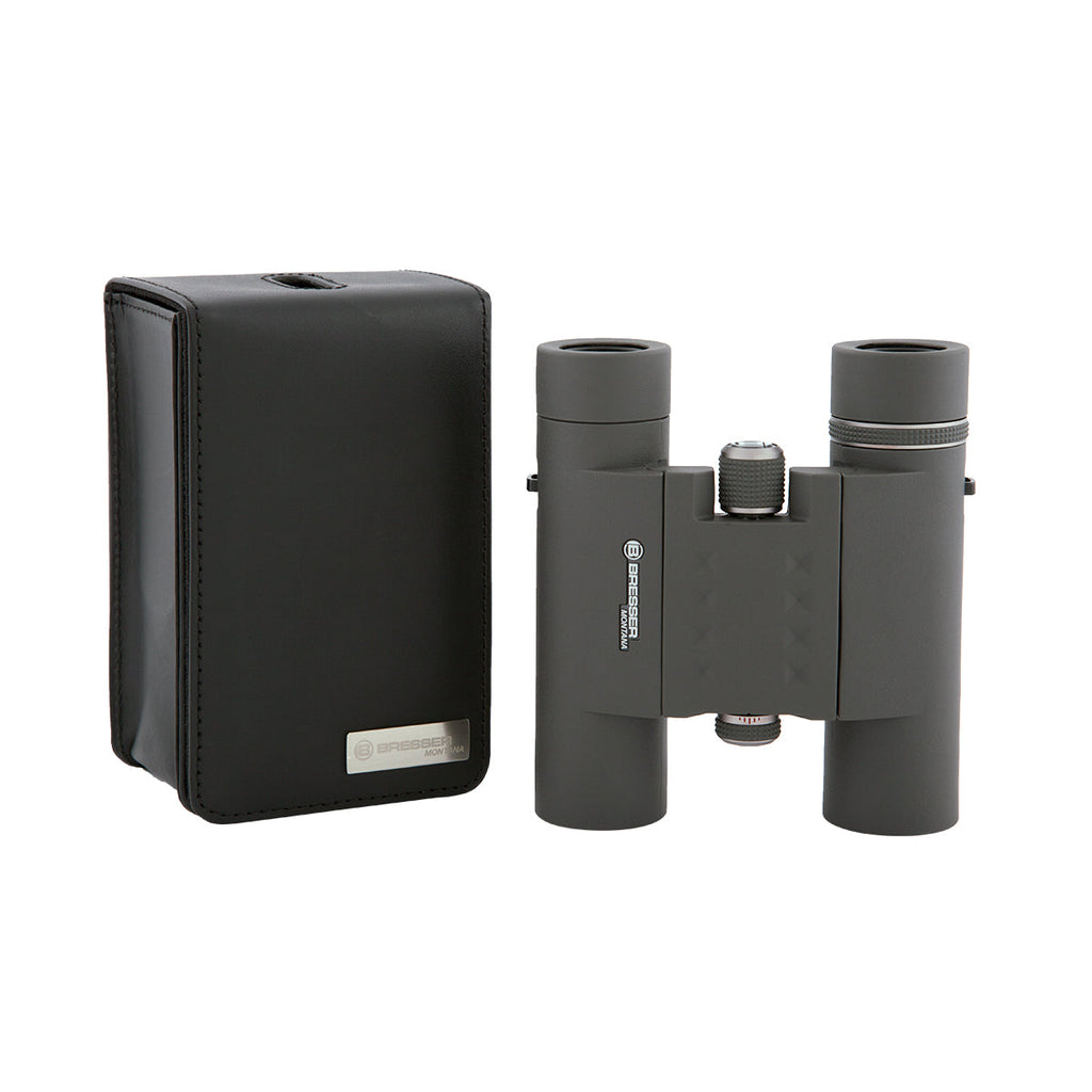 The central focus knob is rubber-coated and knurled for better grip, making it easy to achieve sharp focus by simply turning the knob with both hands. For easy portability, the Bresser Montana waterproof binoculars come with a high-quality leather bag and a practical carrying strap, ensuring you're always ready for your next adventure.