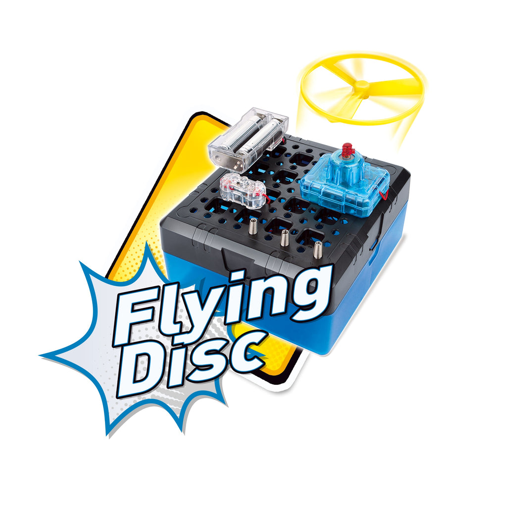 Engineer hours of fun with this build-it-yourself electronic science set! Junior scientists will learn the basics of circuitry as they design challenging maze games for friends, launch a flying disc, build a bubble maker and more. The set includes accessories for 14 different challenges and two multi-purpose storage boxes that double as bases for your builds.