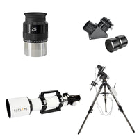 Unlock crisp, high-contrast celestial views and precise astrophotography performance with the Explore Scientific ED102 Essential Series Triplet Refractor paired with the powerful EXOS2 PMC-Eight Go-To Mount. Designed for serious visual astronomers and imaging enthusiasts, this system combines premium optics with an advanced tracking platform for exceptional deep sky and planetary observation. At the core is the ED102 air-spaced triplet apochromatic refractor, which uses HOYA FCD1 extra-low dispersion glass and proprietary EMD coatings to all but eliminate chromatic aberration—revealing razor-sharp lunar craters, planetary detail, and faint nebulae with remarkable clarity. The optical system’s 102mm aperture and diffraction-limited performance make it a standout for astrophotography and detailed visual observing alike. Mounted on the EXOS2 PMC-Eight, users benefit from Explore Scientific’s award-winning 8-core motion control architecture. The dual-mode wired/wireless Go-To system is compatible with a wide array of devices and astronomy software, offering precise slewing, tracking, and access to a database of over 80,000 celestial objects via the ExploreStars app. This complete system is ideal for observers seeking the portability of a mid-sized refractor combined with the rock-solid stability and advanced functionality of a modern equatorial mount.