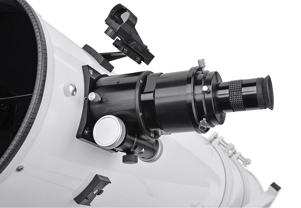 The innovative hybrid design allows for seamless conversion from a Dobsonian to a Newtonian reflector, giving you the freedom to move between immersive visual astronomy and precise imaging. Equipped with a premium 2.5" HEX focuser, a red dot viewfinder, a 25mm SuperPlössl eyepiece, and a smart device adapter, this package is a complete gateway to the cosmos.