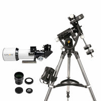 The Explore Scientific ED80 f/6 Air-Spaced Triplet APO Package is a complete, high-precision astrophotography system designed for beginners to advanced imagers. Featuring the acclaimed ED80 triplet apochromat, a matched 0.8× focal reducer/field flattener, the iEXOS-100 PMC-Eight GoTo equatorial mount, and two CW22-00 counterweights, this setup delivers everything you need for portable, accurate deep-sky imaging.