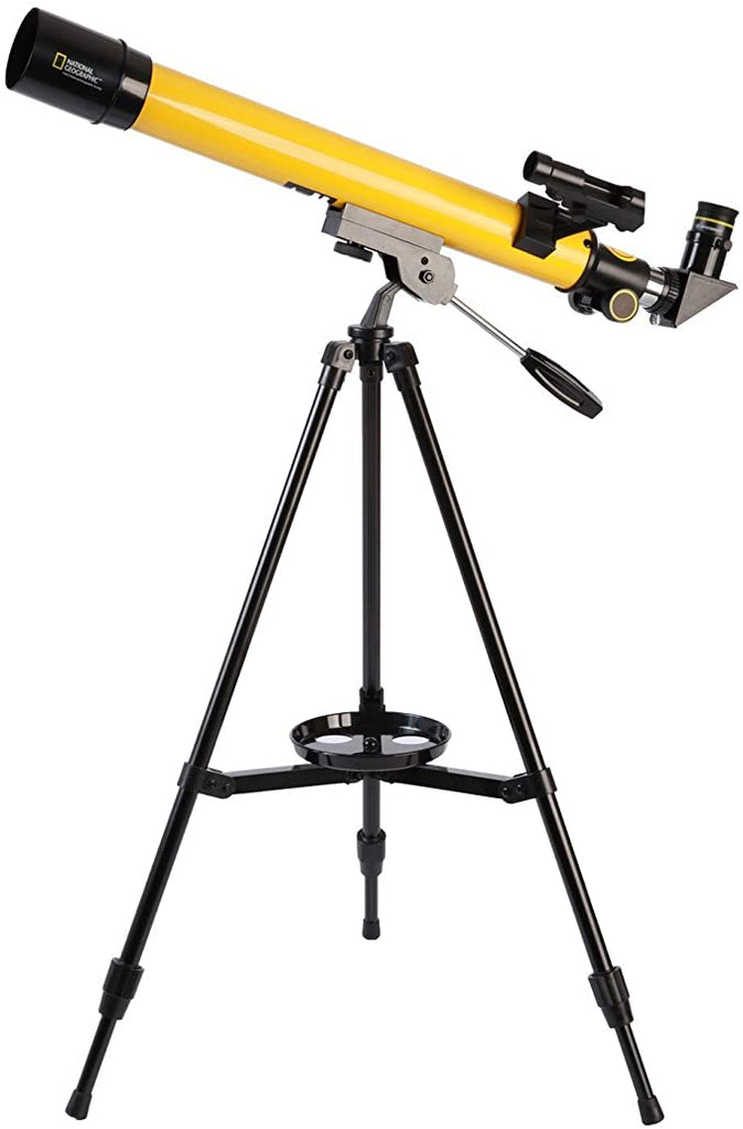 Lightweight and highly portable, the National Geographic 50mm Telescope makes it easy to explore the celestial and the terrestrial at a moment‘s notice. Made by Bresser, this achromatic refractor has a 2“ aperture that can reveal wonders like the intricacies of the lunar terrain or some of the brighter deep sky objects. The two included Plössl eyepieces generate crisp images and work with the scope’s 600mm focal length to give a magnification range of 23x to 62x. The telescope comes with a simple tripod and mount so the instrument can smoothly move up, down, left and right by manipulating a large, simple-to-use handle. Other accessories include a red dot LED viewfinder, Downloadable star map and astronomy software.
