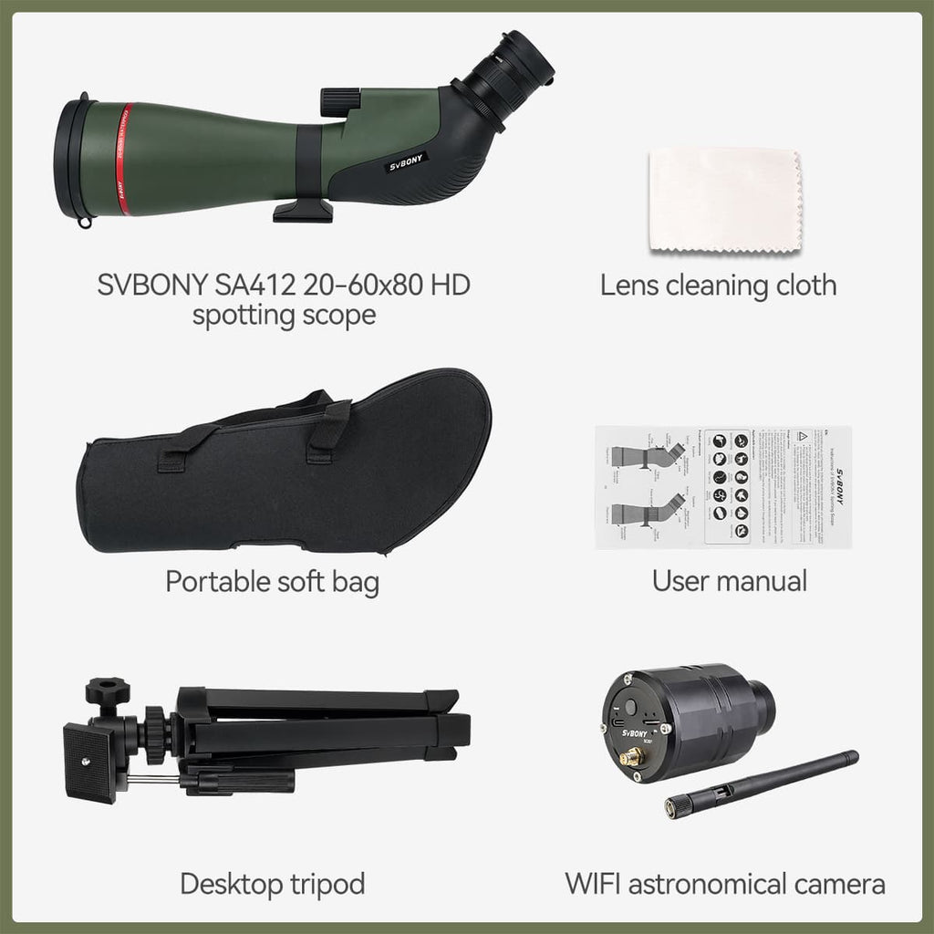 SA412 20-60X80 Spotting Scope with Wifi Camera Birding Photography