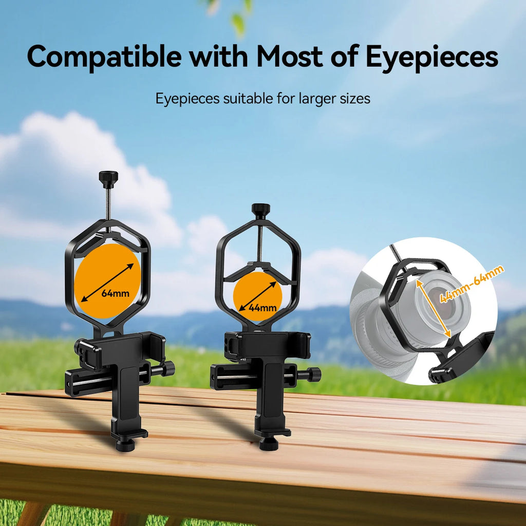 The phone adapter can compatible with many telescope, like binoculars, microscopes, monocular telescope.