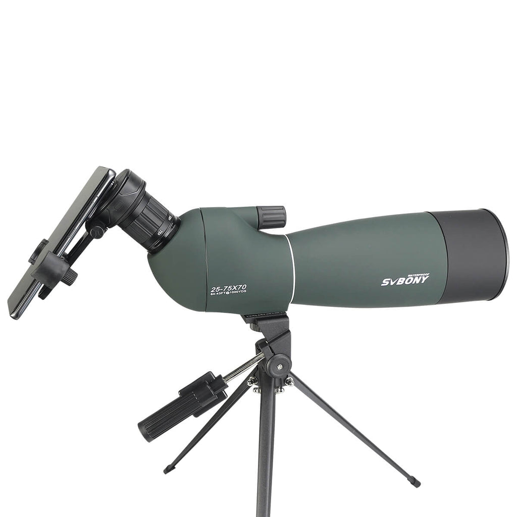 - The SV218 Compatible with binoculars, monoculars, spotting scope, microscopes or astronomical telescopes. Lens size 38.5 – 43mm.