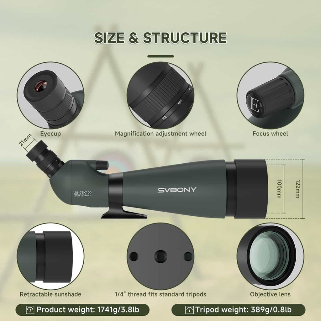 SV28A 25-75X100 Spotting Scope For Archery Shooting, Target Observing and Birding Scenarios