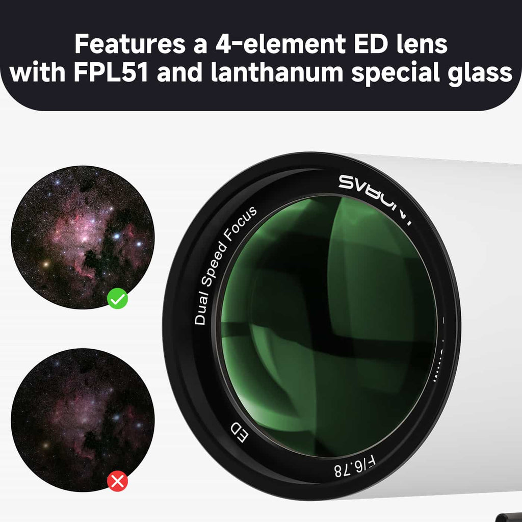 SVBONY SV503 70mm Upgraded f/6.78 Quadruplet 2-Element ED Flatfield Refractor Telescope for cameras APS-C Sensors