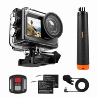 - IPX8 30m underwater with case: IPX8-rated and waterproof up to 30m, the action camera features a leak-proof housing. Paired with a buoyant tripod, it stays afloat and stable—perfect for capturing clear underwater shots;
